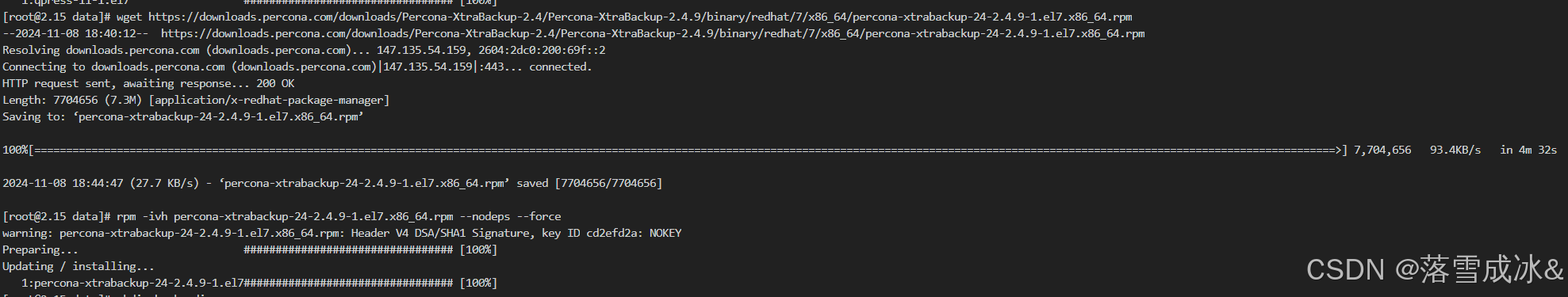 安装:rpm -ivh percona-xtrabackup-24-2.4.9-1.el7.x86_64.rpm --nodeps --force