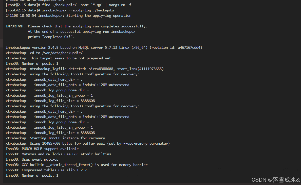 innobackupex --defaults-file=/etc/my.cnf --copy-back ./backupdir