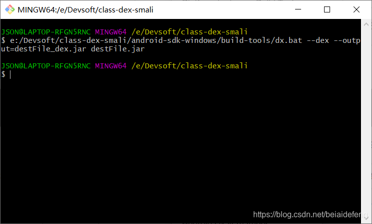 4、用Android sdk/build-tools下的命令dx --dex --output=destFile_dex.jar destFile.jar得到包含.dex类型的jar包