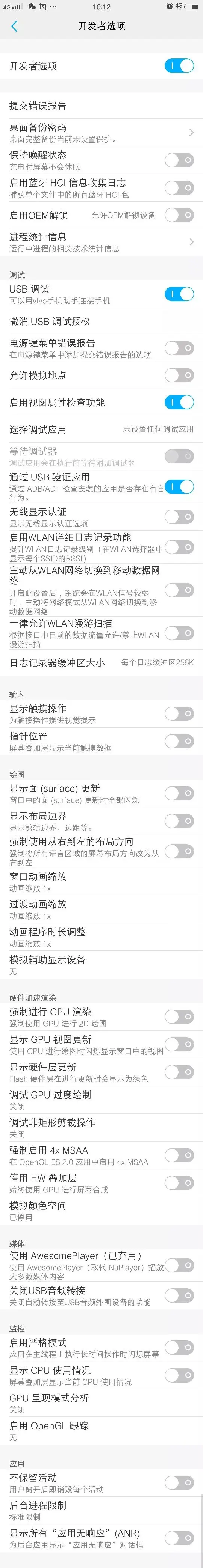 首先从不需要依赖任何工具,直接借助手机中的开发者选项进行应用性能检测说起。开发者选项需要进入开发者模式后才能在系统设置中显示,对于大多数设备,可以通过如下方式在手机中开启开发者选项:打开“系统设置”→点击进入“关于手机”→连续点击“版本号”选项直至提示已进入“开发者模式”,就可以在“系统设置”中看到“开发者选项了”,打开“开发者选项”,可以看到很多能够帮助开发者检测应用性能的选项: