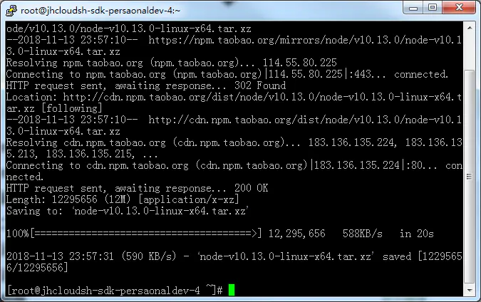 wget -c https://npm.taobao.org/mirrors/node/v10.13.0/node-v10.13.0-linux-x64.tar.xz