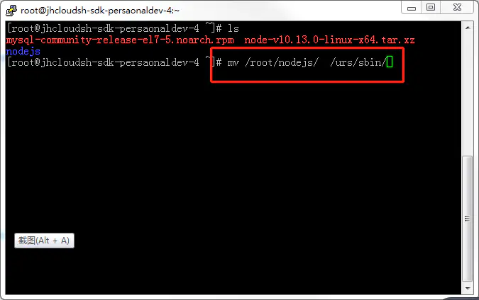 那么重头戏来了,我们需要把/root/nodejs文件夹移动到/usr/sbin/目录下
