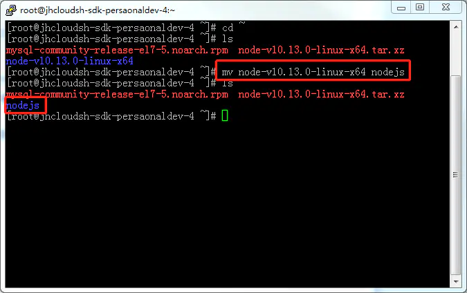mv node-v10.13.0-linux-x64 nodejs