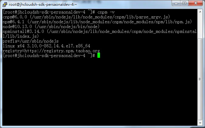 安装成功后,cnpm可执行文件会下载到nodejs的安装目录下(也就是/usr/sbin/nodejs/bin/)。接着我们把cnpm配置到全局下,也就是创建软链接到/usr/local/bin/下(如果本来就在该目录下不要做软连接)