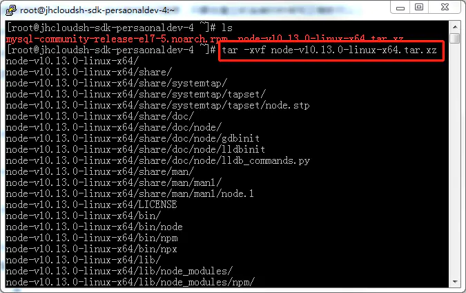 tar -xvf node-v10.13.0-linux-x64.tar.xz