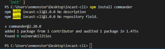 12.npm install commander