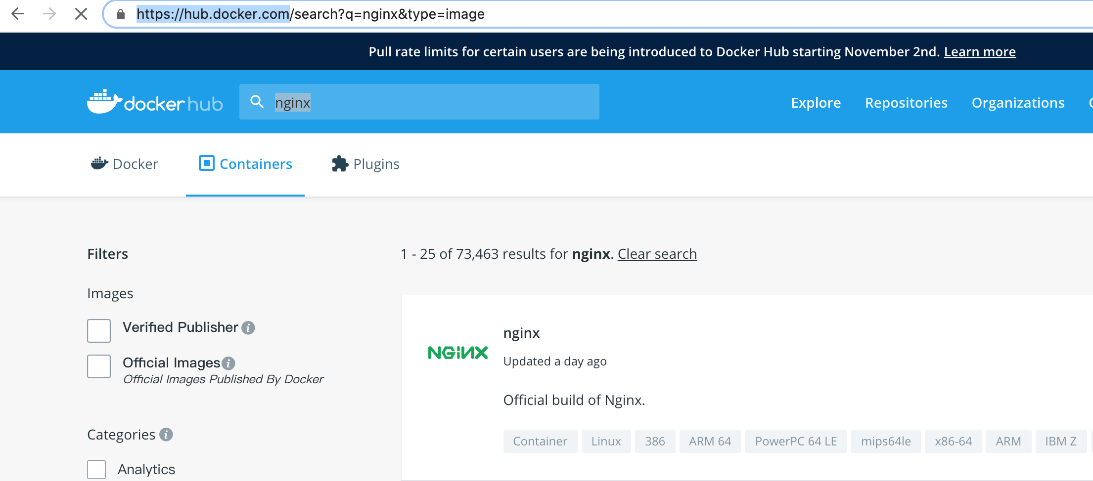 sudo docker search nginx
