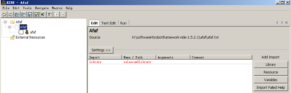 RIDE导入的库显示为红色,表示导入的库不存在。