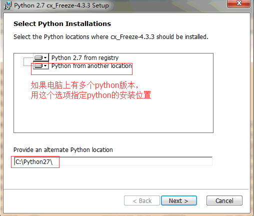 如果上有多个python版本,可以指定cxfreeze安装路径: