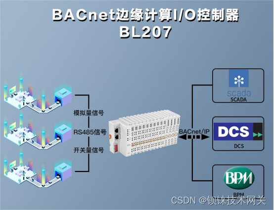 BACnet I/O模块采用钡铼BL207,在设备和房间自动化具有核心作用,成为了供暖、空调和制冷的典型信息节点,采集上传各楼层的自动化数据。