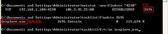 如果在上面步骤之后,我们得到的PID为2016,那么我们就可以输入命令【tasklist|findstr "2016"】,在第一行显示的名字就是程序名,这样我们就明白是那个程序占用的端口。