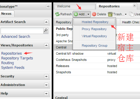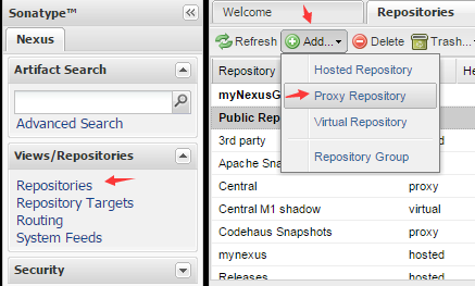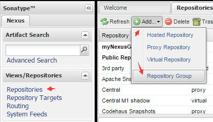 nexus即可以建立多个仓库,也可以把已存的仓库组合起来作为一个仓库。