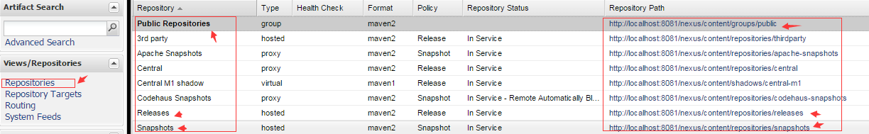 和 http://localhost:8081/nexus/content/repositories/snapshots/