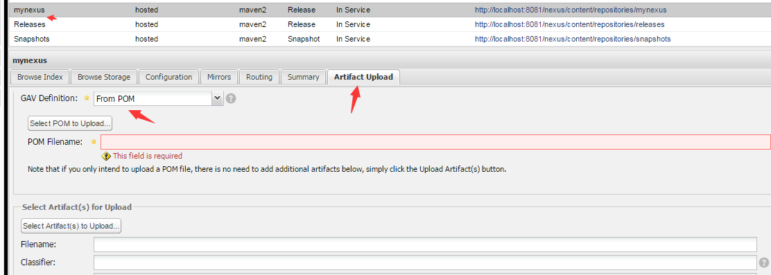 此外,因为本地上传到的地址是 http://localhost:8081/nexus/content/repositories/releases/