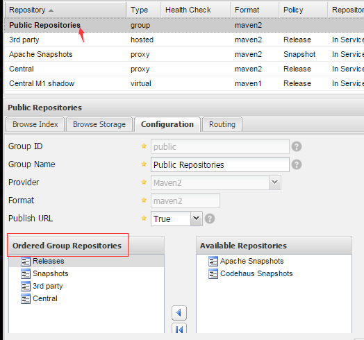 11.2.1 Repository的名字为 Public repositories,其作为替代maven中央仓库和其他仓库的和作为私服的对外接口,