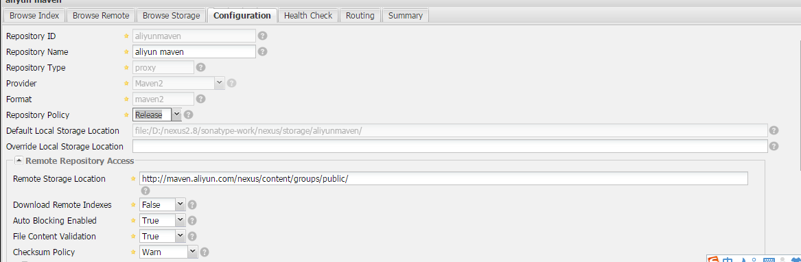 其中所有的设置可以参考Central(即nexus自带的中央镜像),唯一不同的是名字和地址