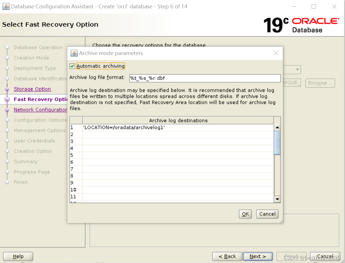 /archivelog2:用于冗余存放归档日志(归档日志的损坏并不会影响数据库运行,一般可以不进行冗余,如发现损坏,及时做好rman备份即可)