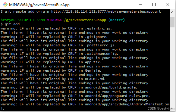 1)在git add . 的时候可能出现已下警告,不用理会,再执行一次命令即可