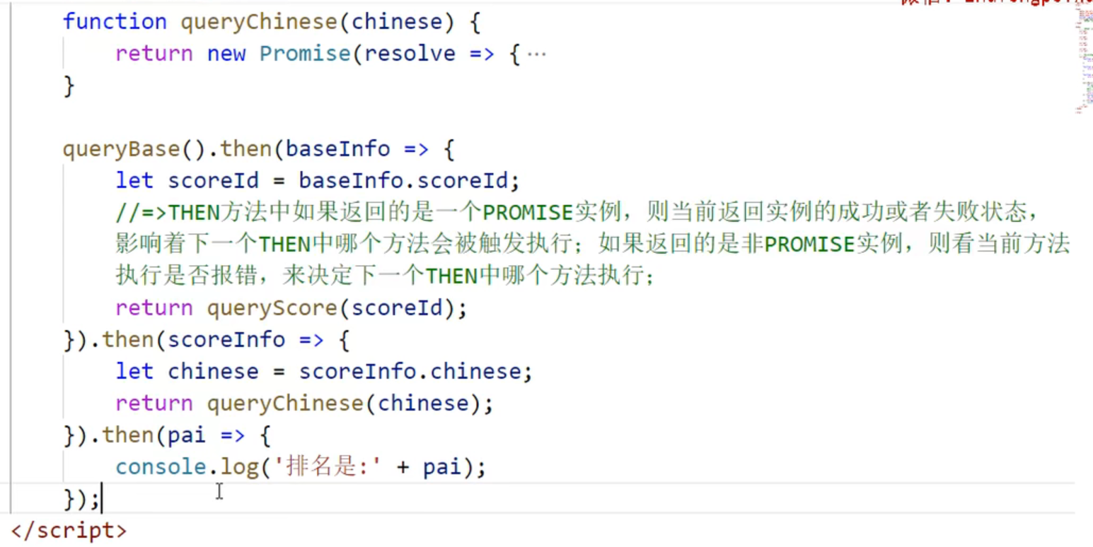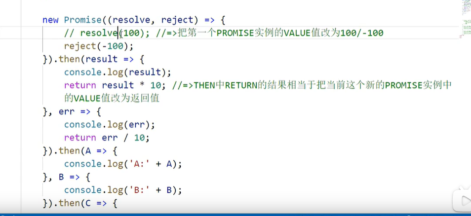 如果then中返回的是一个promise,那么当前这个promise实例的状态就决定了下一个then中的哪个方法会执行