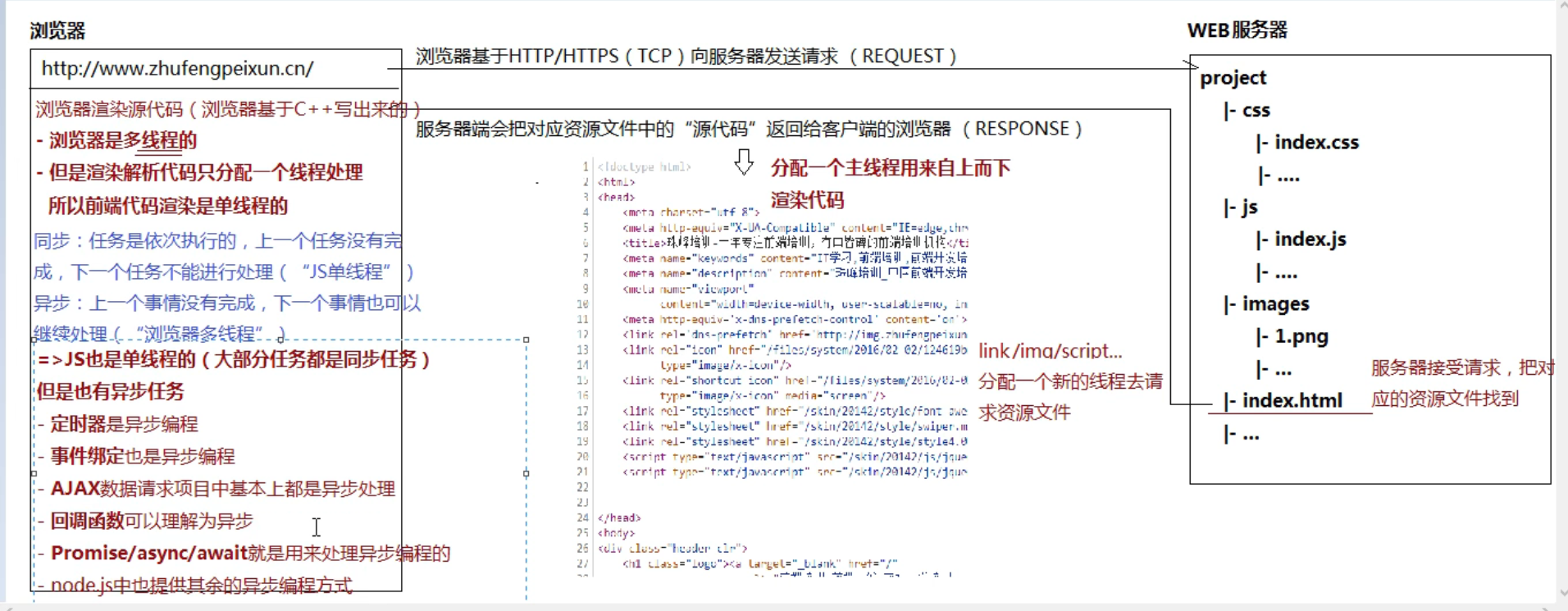 遇到link/iimg/script标签,浏览器都会分配一个新的线程去请求资源文件(加载),主线程继续往下渲染;