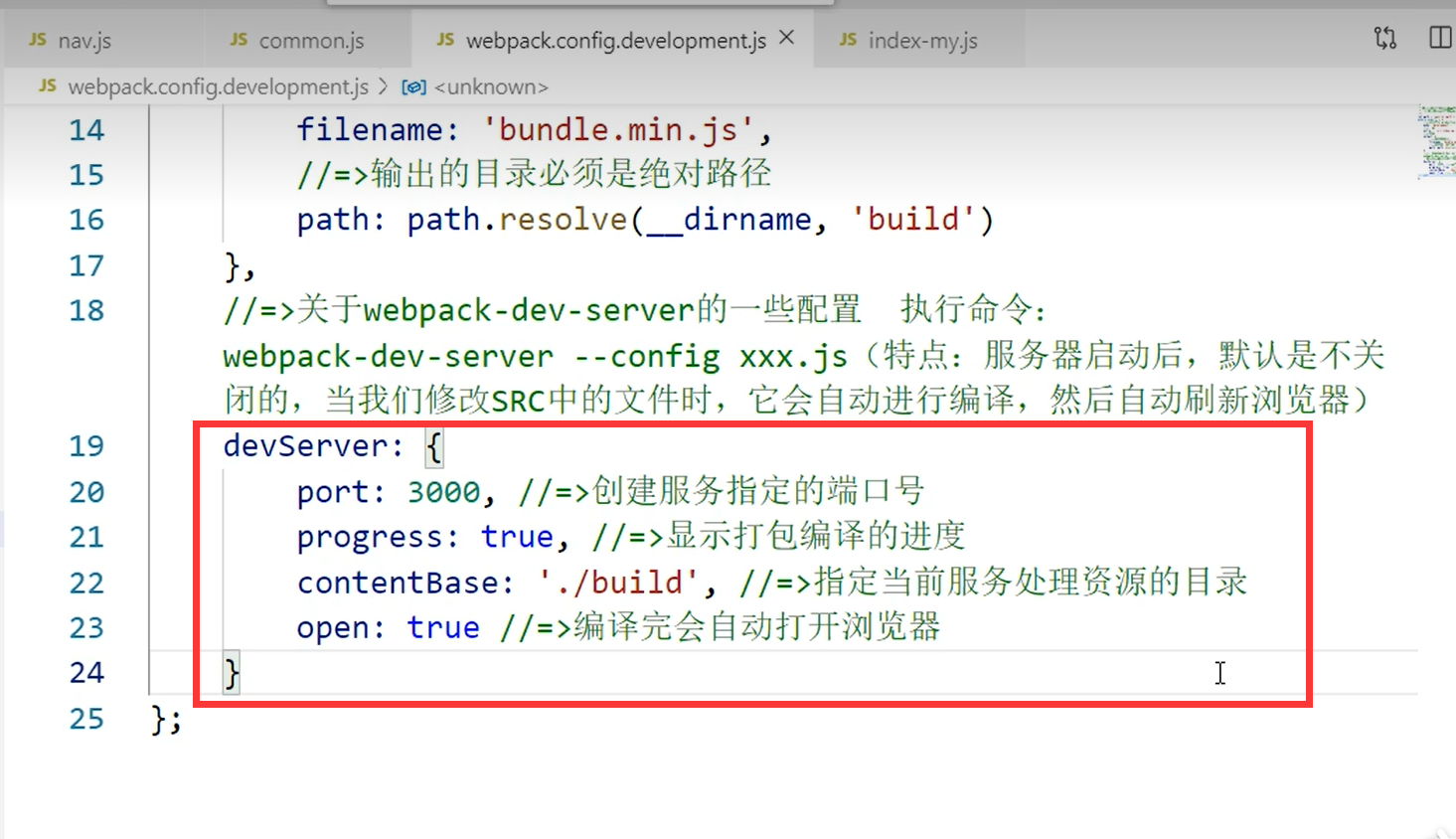 作用:webpack-dev-server打包+启动服务; webpack只能打包
