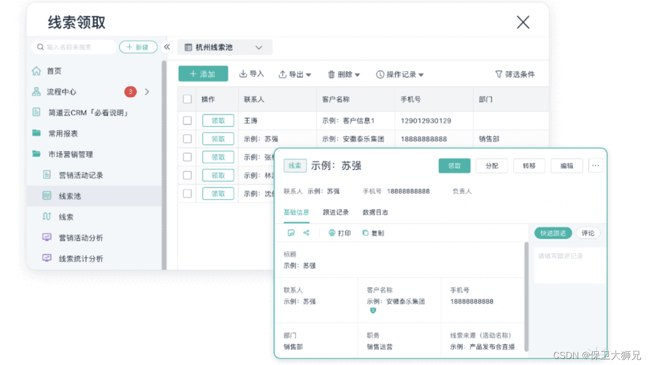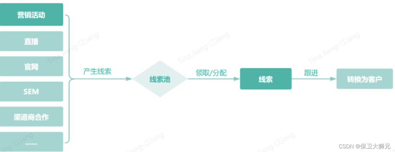 在市场营销活动中,企业会收集到大量的潜在客户信息,这些潜在客户被称为“线索”或“潜在客户”。CRM系统可以帮助企业有效地追踪和管理这些线索,包括线索的来源、状态(如“新线索”、“正在跟进”、“已转化为客户”等)、跟进记录等。CRM系统通常提供自动化功能,如自动分配线索给销售人员、发送提醒通知以跟进线索等,以提高线索的转化率。