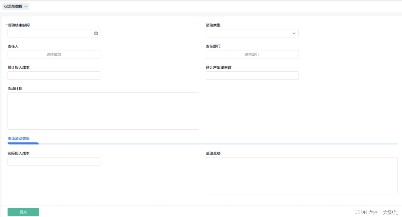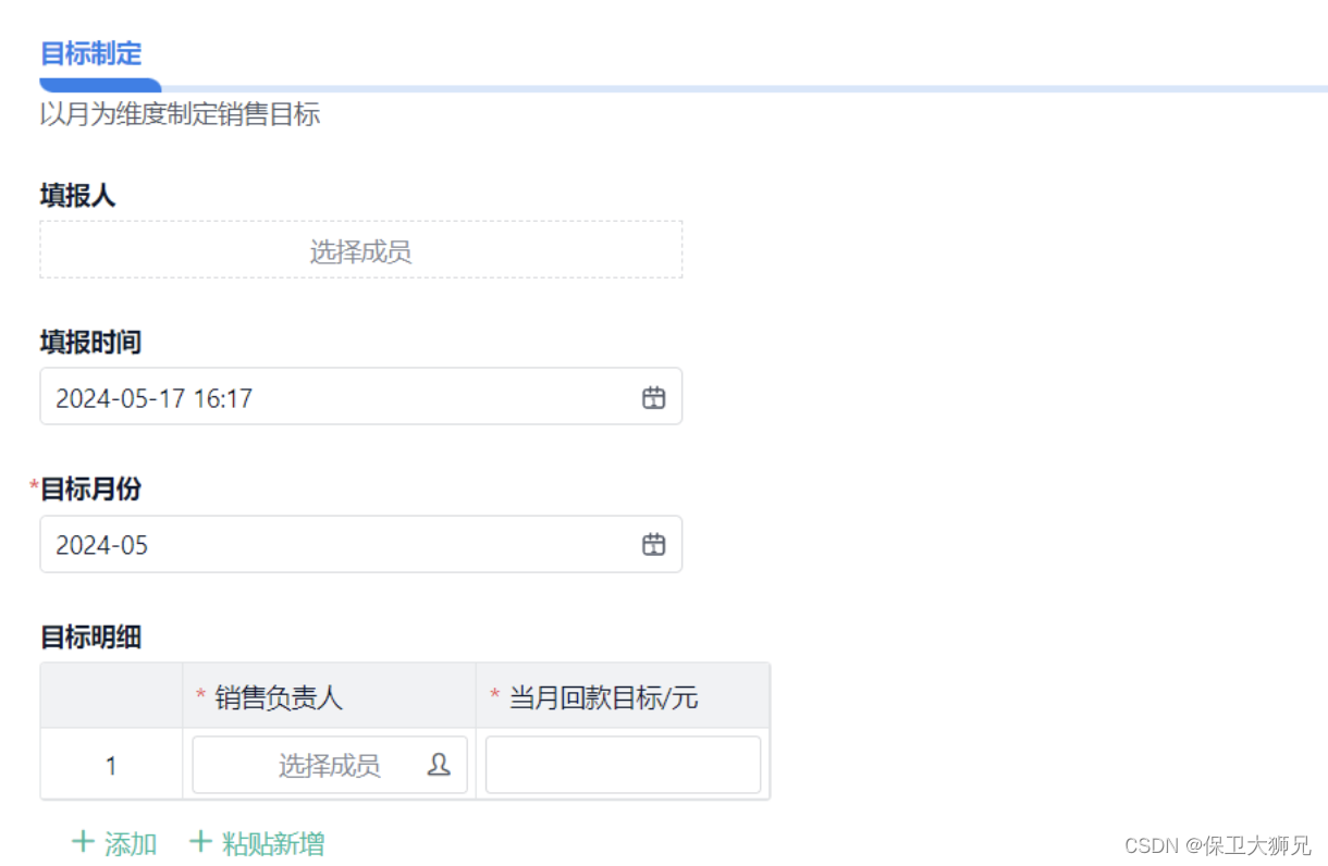 (1)销售目标申报:支持销售团队和个人填写销售目标申报表单