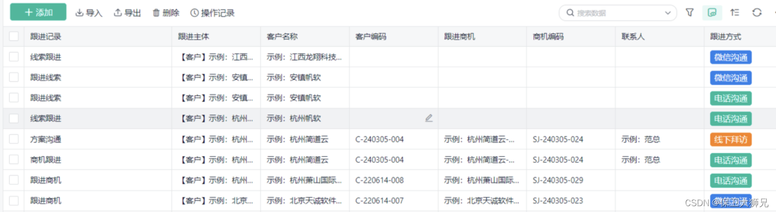 - 集中管理客户信息:CRM系统提供了一个集中的数据库来存储和管理客户信息,包括基本信息、购买历史、沟通记录等,方便销售人员随时查看和更新。
