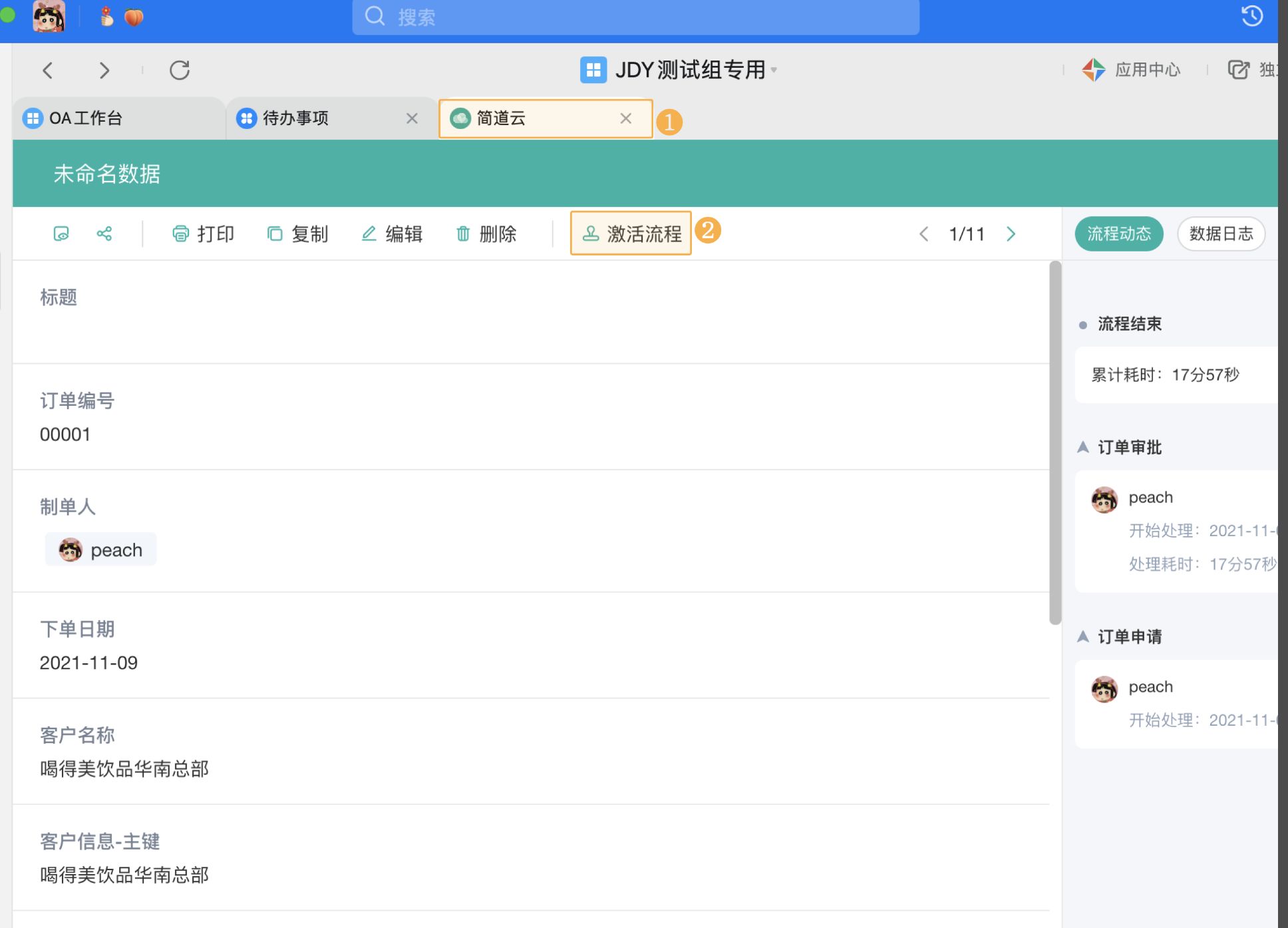 现在市面上有很多零代码工具,像简道云就有OA模板可以使用,通过简单的拖拽就可以完成自定义。