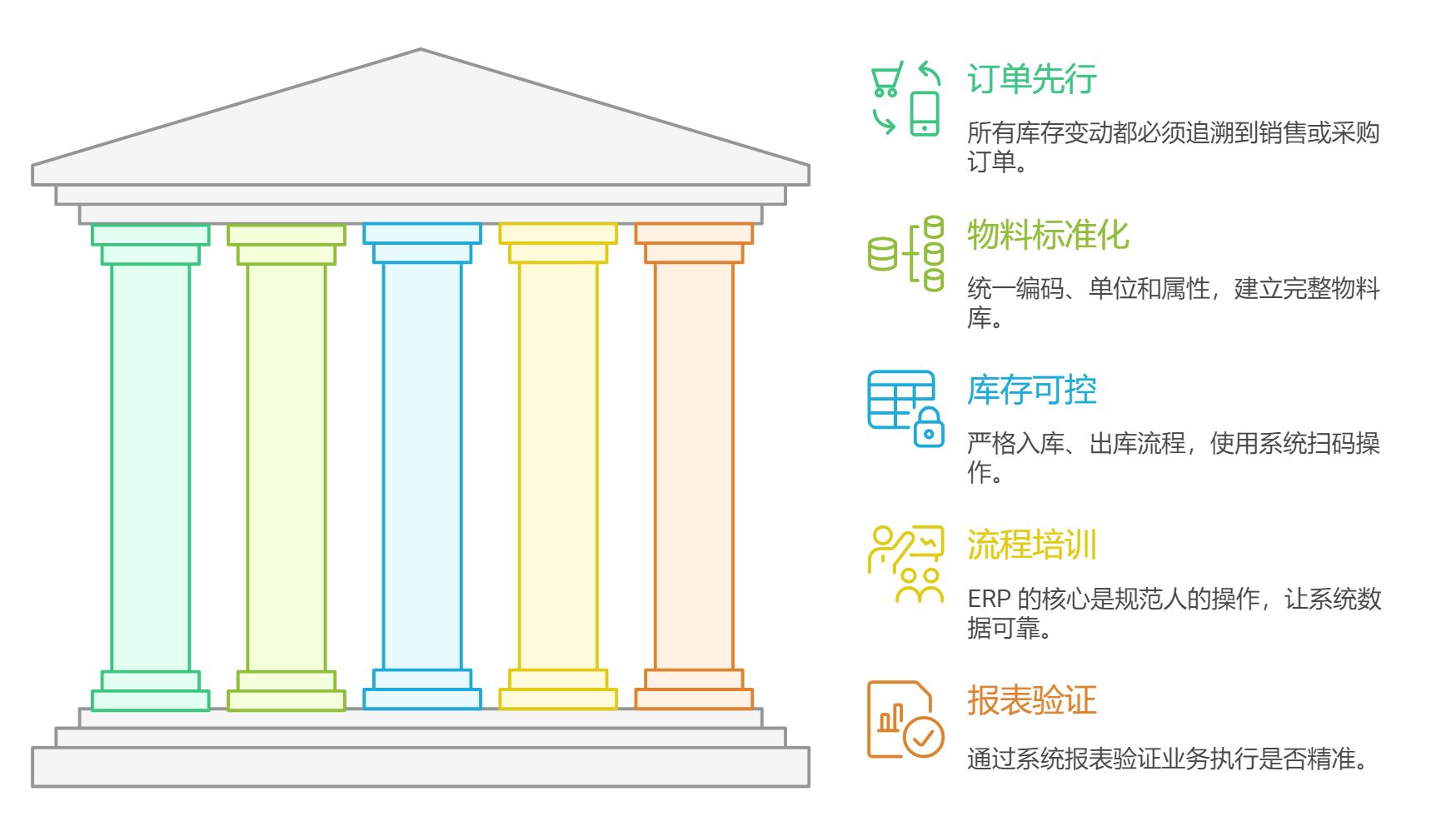 - 流程培训:ERP 的核心是规范人的操作,让系统数据可靠;