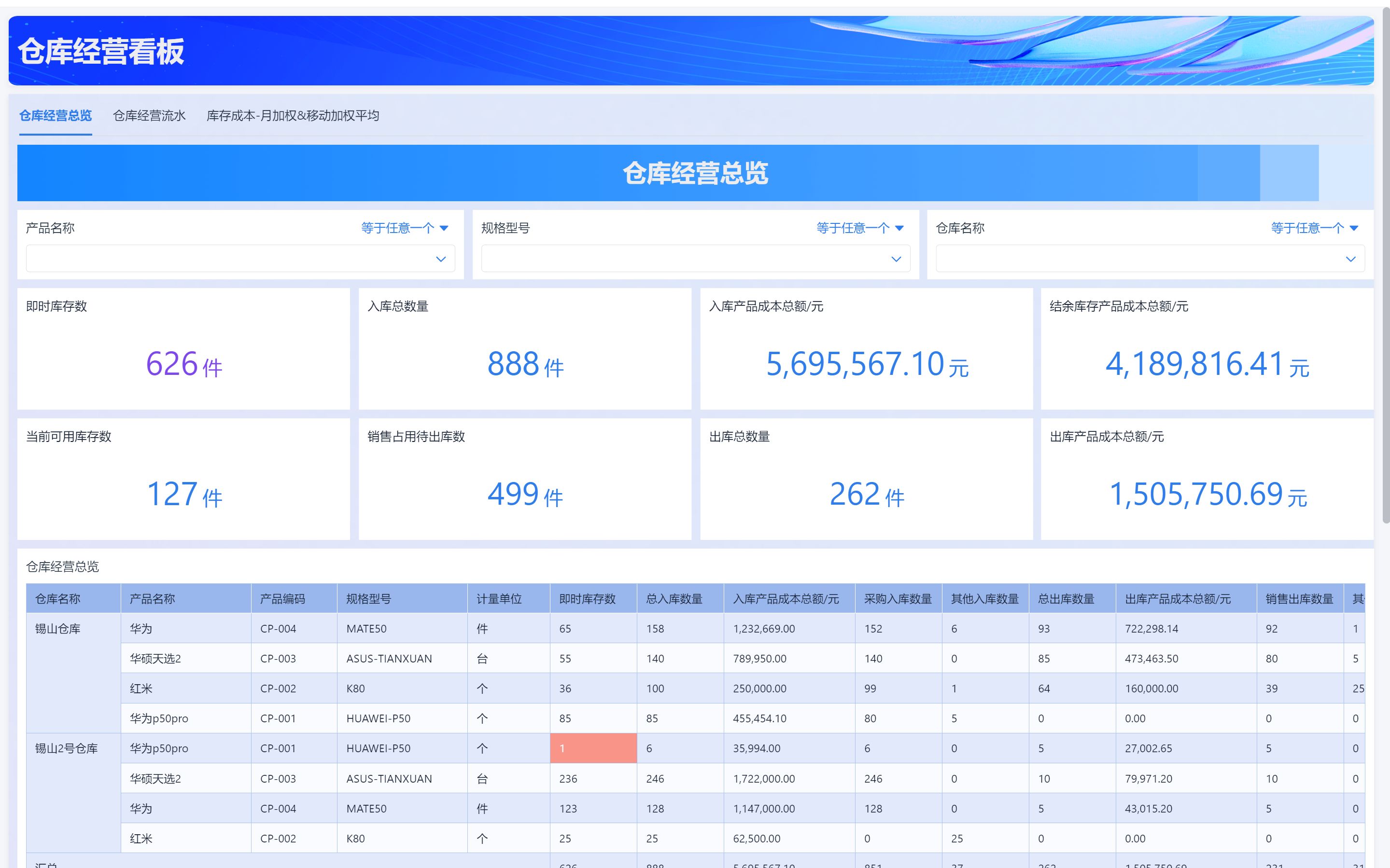 财务和管理层可以随时查看库存报表,对异常库存即时预警,避免月底盘点才发现差异的尴尬。