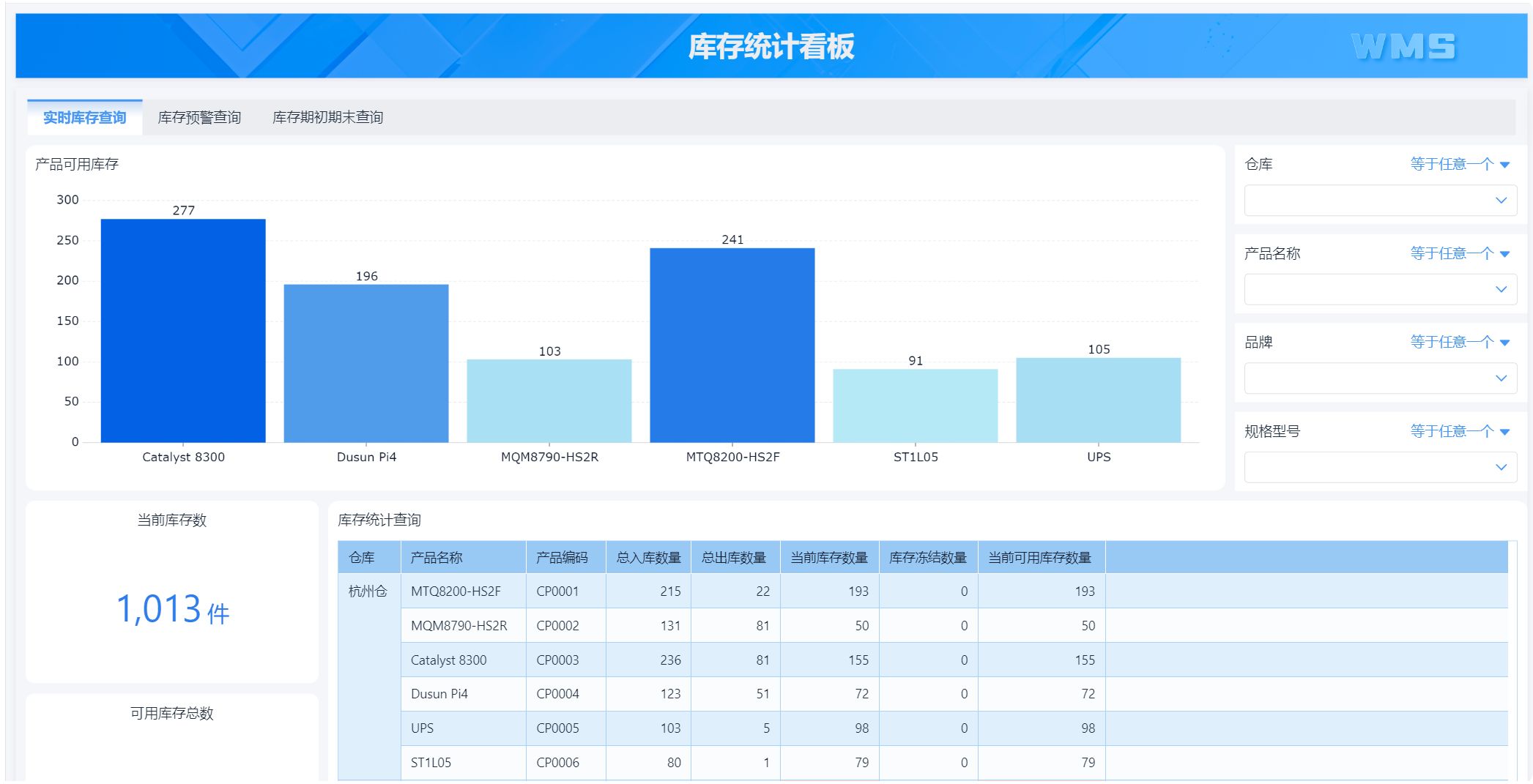 3)数据可视化:库存、出库、占用量一眼就能看到