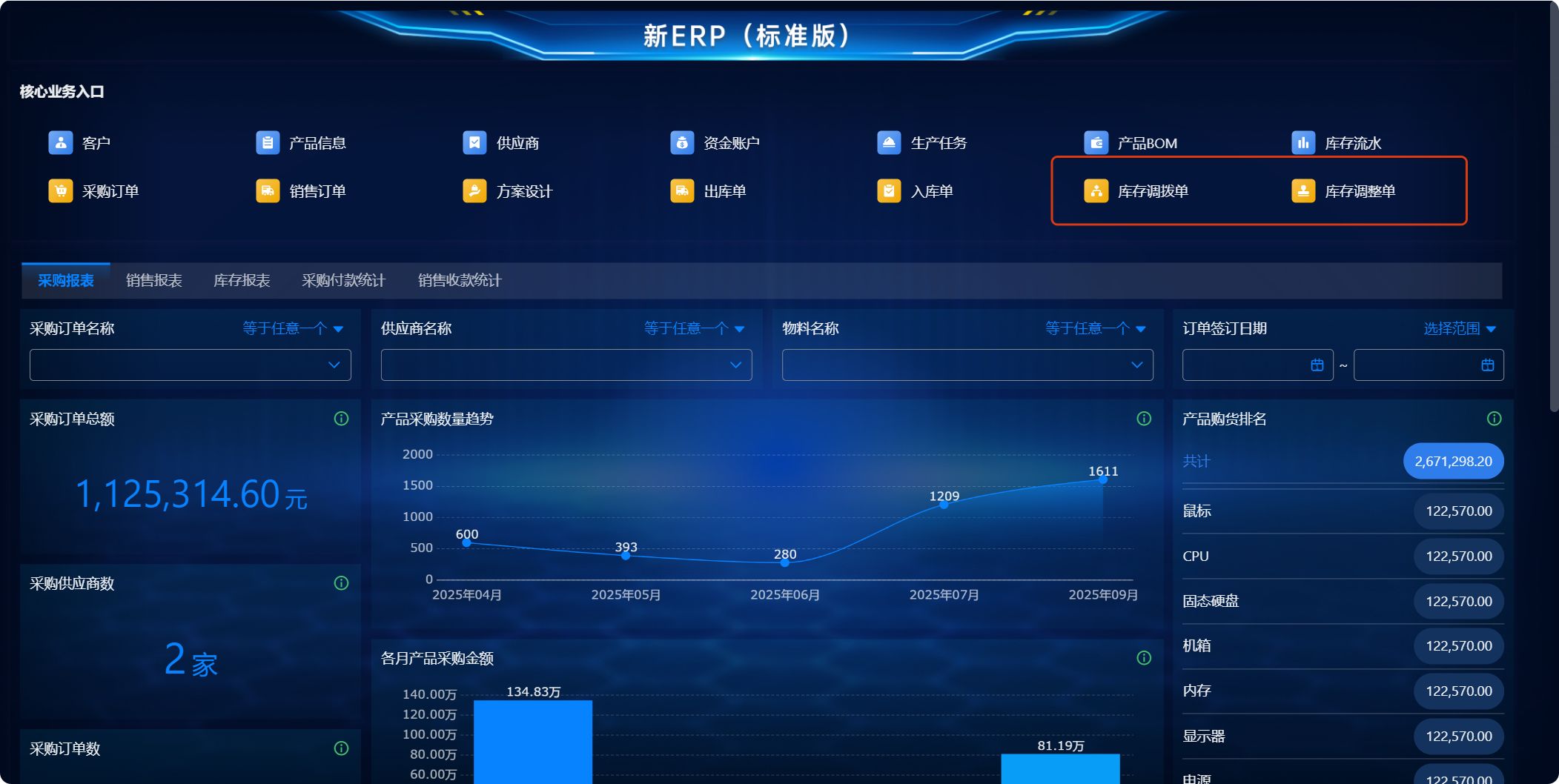 像金蝶、用友、SAP、Oracle、金蝶云星瀚、用友BIP,这些 ERP 自带基本仓库功能。 适合业务没那么复杂、SKU 不多、库存规则简单的中小企业。