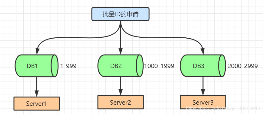 我:批量申请自增ID的解决方案可以解决无ID可分的问题,它的原理就是一次性给对应的数据库上分配一批的id值进行消费,使用完了,再回来申请。