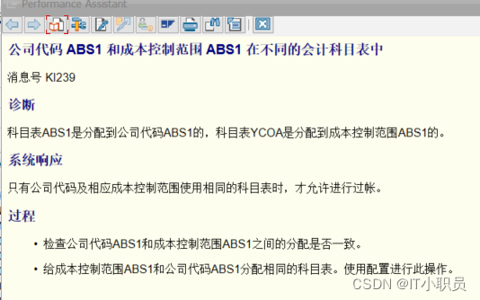在新配置的公司上打算做第一个数据导入的凭证现现了一个报错。“公司代码 ABS1 和成本控制范围 ABS1 在不同的会计科目表中”见下图: