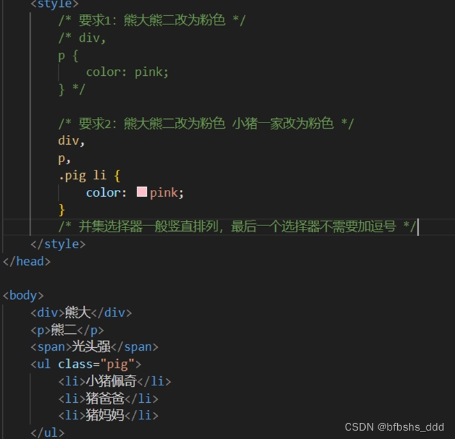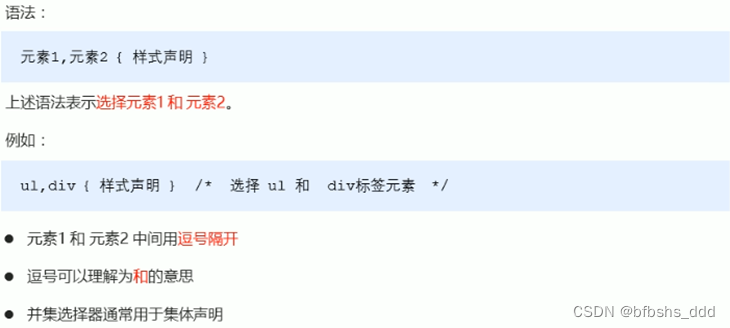可以选择多组标签,定义相同的样式,通常用于集体声明