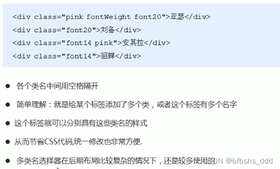 一个标签可以有多个类名,多个类名中间必须用空格分开