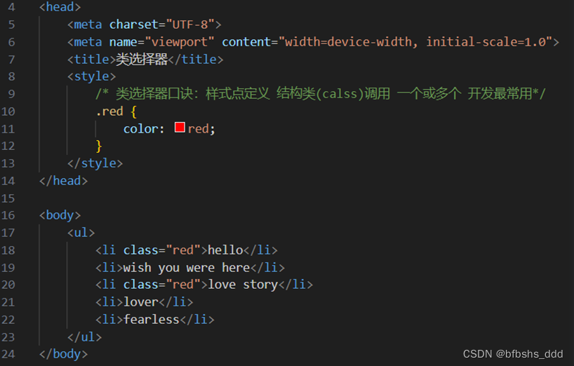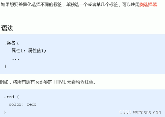1.2类选择器:起的类名不能为标签名,类名为词组时可用短横线“-”分割,类命名规则可查询web前端开发规范手册