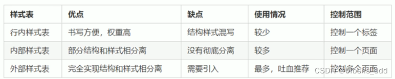 按照CSS样式书写位置(引入方式),CSS样式表分为三大类:行内样式表(行内式)、内部样式表(嵌入式)、外部样式表(链接式)