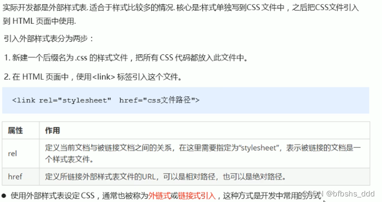 实际开发经常使用,样式单独写到CSS文件中,之后把CSS文件引入到HTML页面