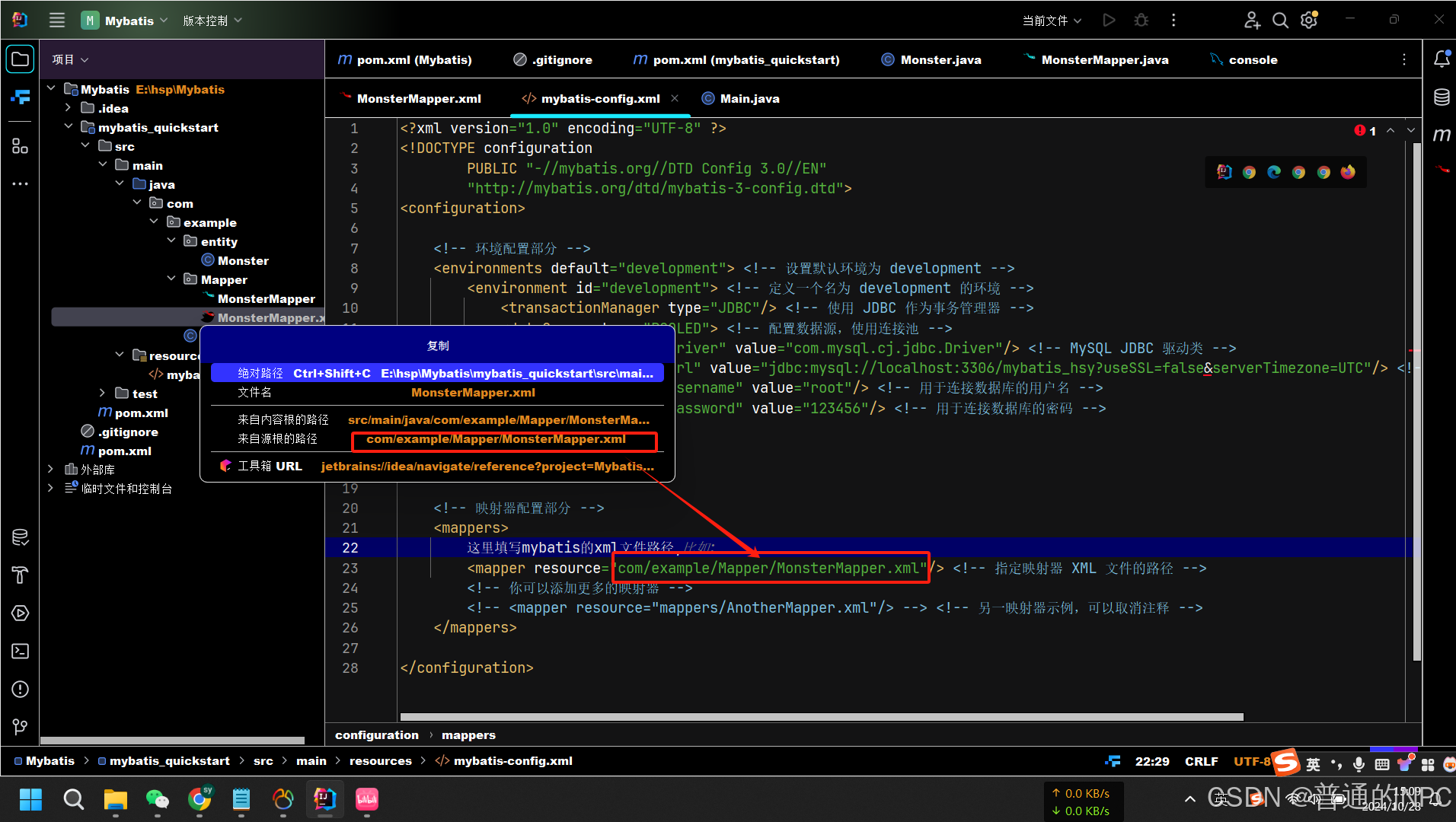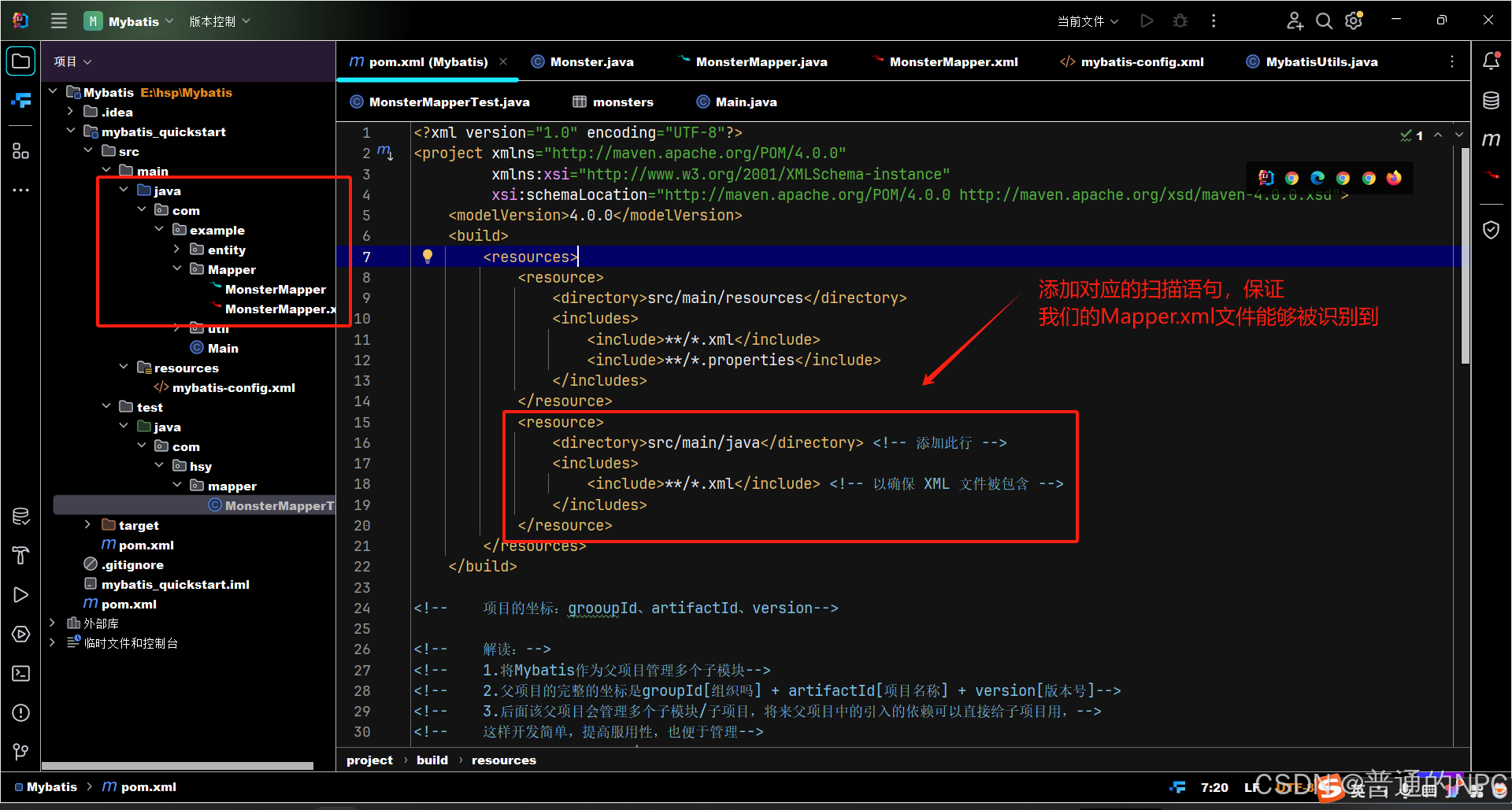 <mapper resource="com/example/Mapper/MonsterMapper.xml"/>