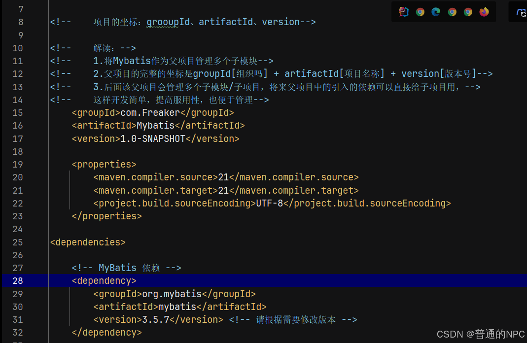 注意:通常不需要在 pom.xml 中进行特别的配置来识别 .properties 文件,只要文件放在 src/main/resources 目录下,Maven 默认会处理它。但是如果我们放的properties文件没有放到和这个默认目录下,则必须手动添加扫描这些不是默认位置的properties文件或者xml文件例如: