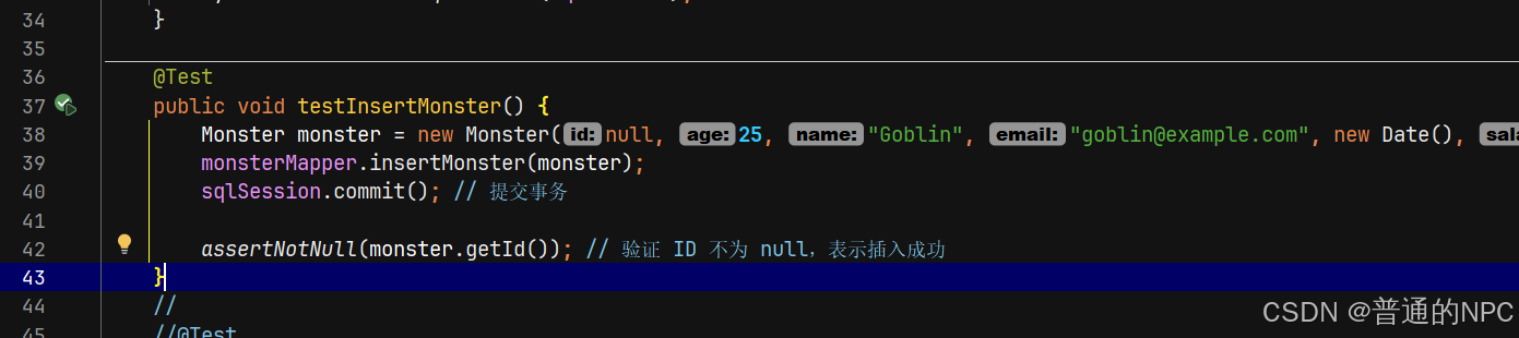 我们用了这个方法assertNotNull,所以SQL语句我们需要回填用户的主键id,