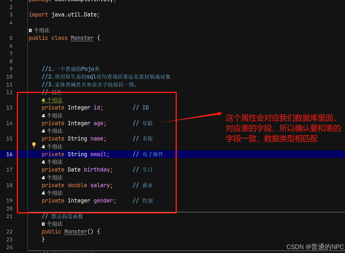 (8)在我们的entity包下面创建一个monster类: