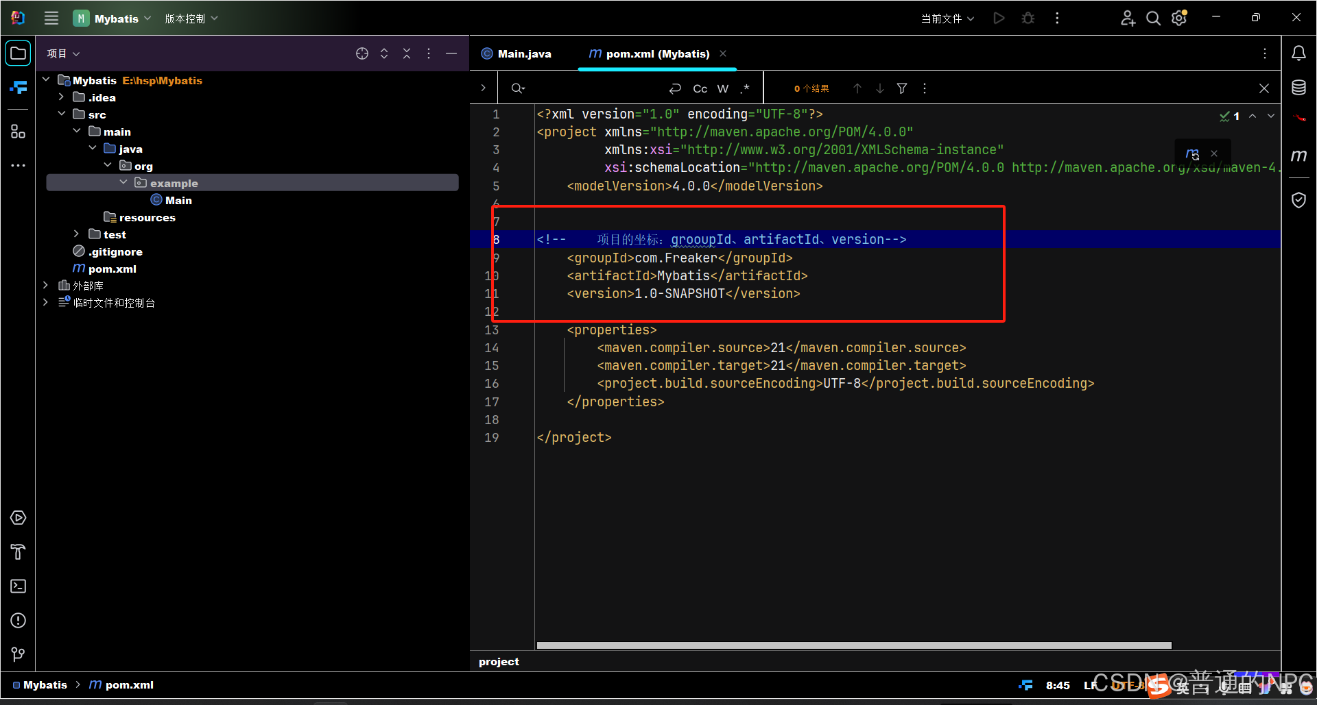 (2)创建好之后更改自己对应的项目坐标,pom.xml文件里面去修改: