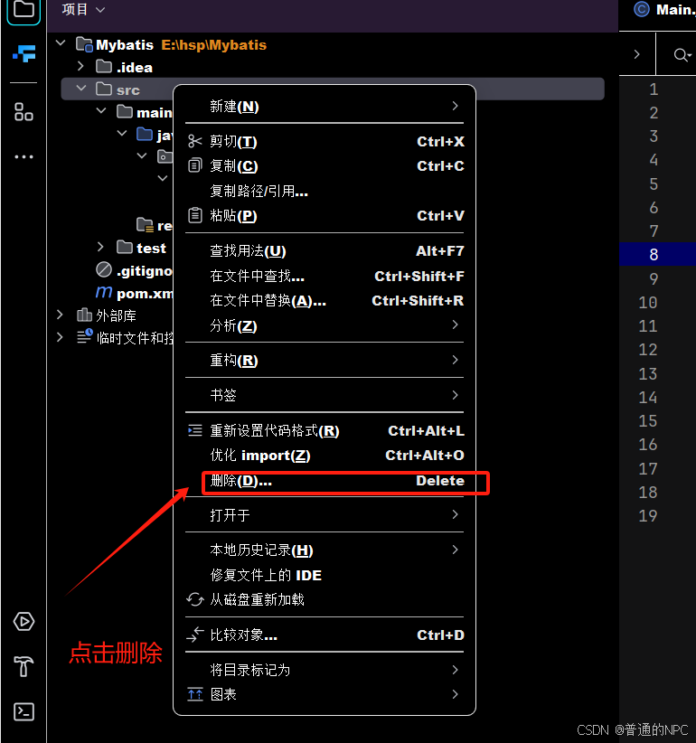 (3)删除src目录,我们要引入“父项目,子项目的概念”: