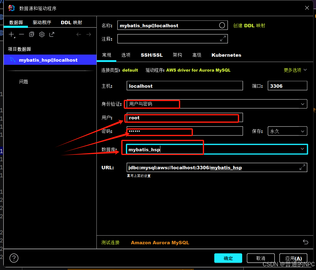 添加我们数据库的数据源: