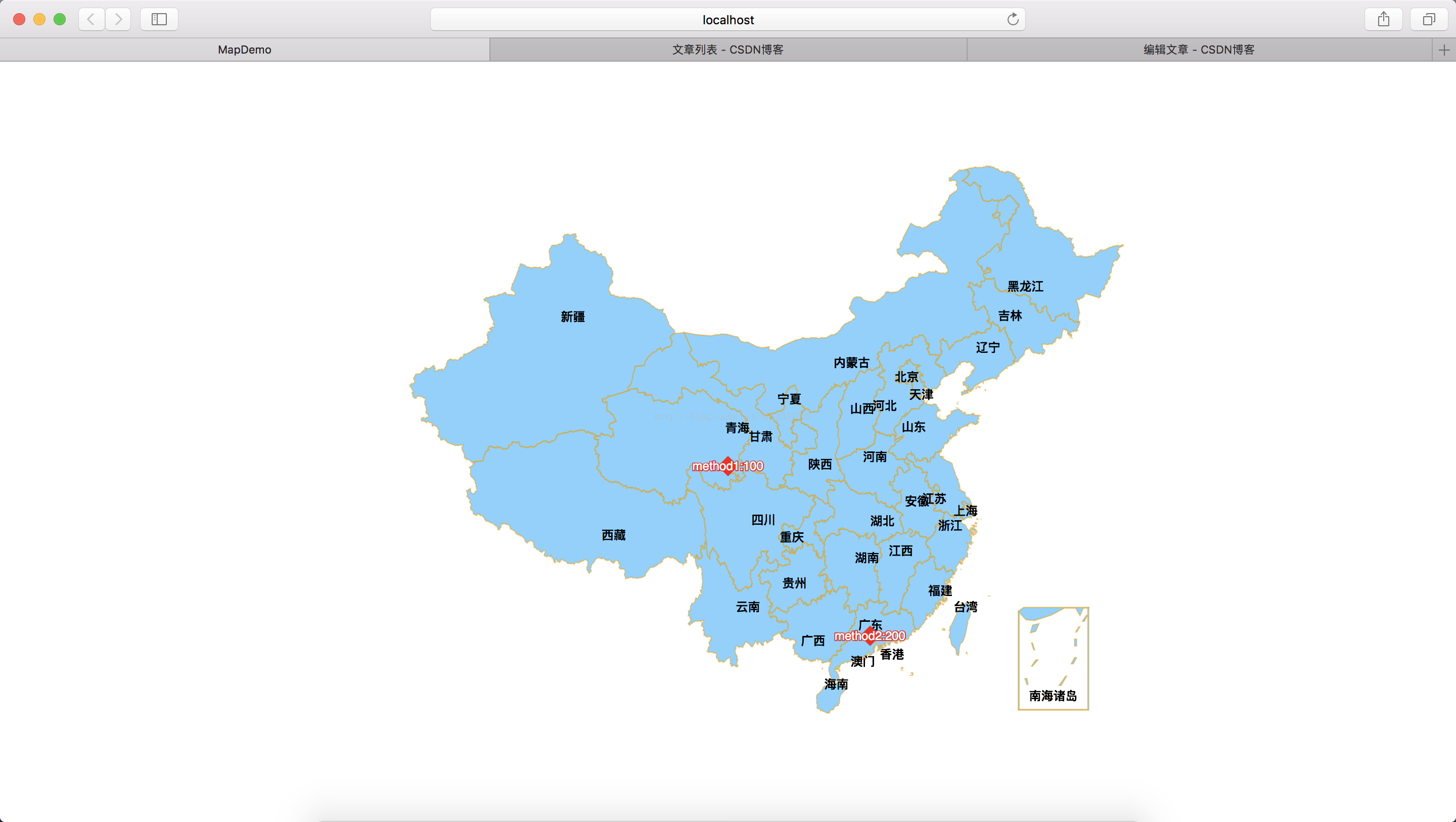 当设定了 geo后,series-map.map属性,以及series-map.itemStyle等样式配置不再起作用,而是采用geo中的相应属性。