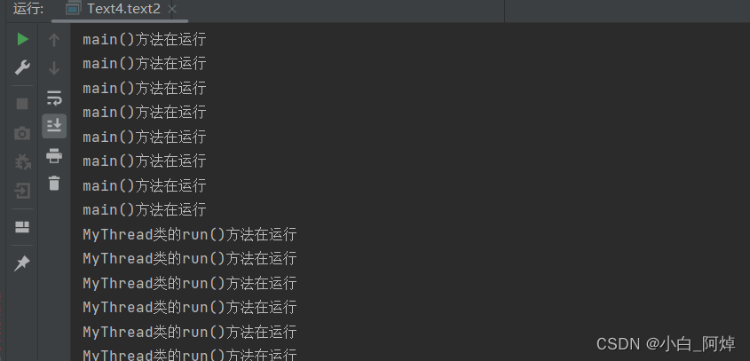 单线程的程序在运行时,会按照代码的调用顺序执行,而在多线程中,main()方法和MyThread类的run()方法却可以同时运行,互不影响,这正是单线程和多线程的区别。