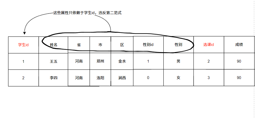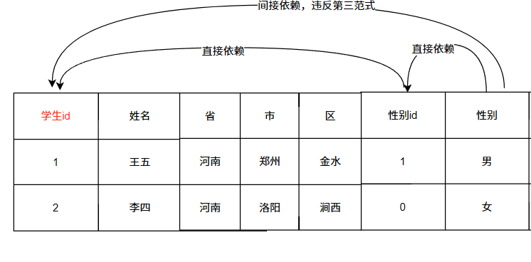 第三范式:即存在有属性不直接依赖主键,这个不好理解可以看图